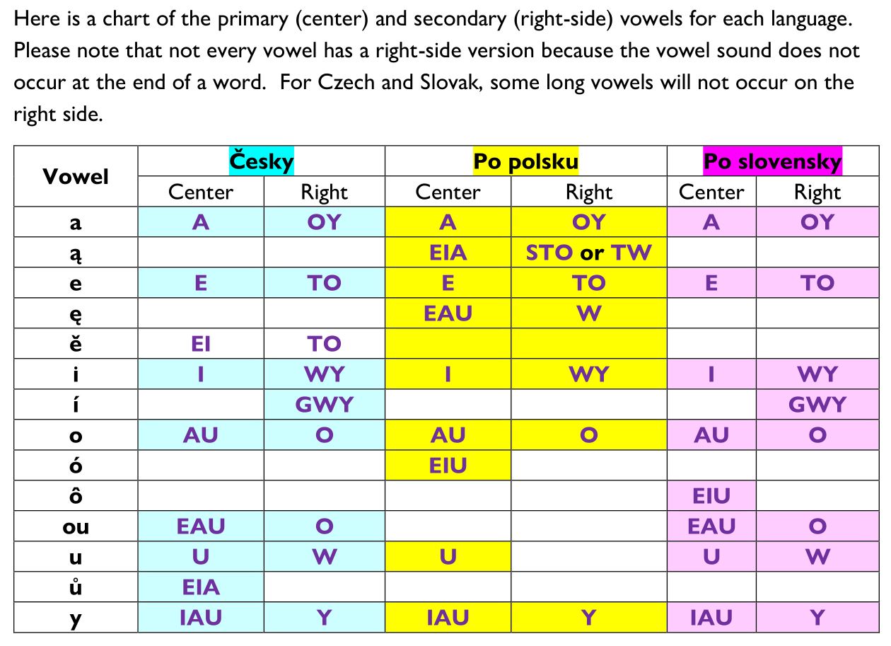 Trudność może sprawić fakt, że grupy nagłosowe, wyciskane lewą ręką na lewej stronie klawiatury, mają inne układy klawiszy, nawet jeżeli identyczna grupa występuje w wygłosie. Np. br występuje w nagłosie w słowie brak ➠ PRJABG, a w wygłosie w słowie bóbr ➠ PJURB. Czyli każdą rękę musimy uczyć niejako oddzielnie. Ale skoro stenotypistom na całym świecie to nie przeszkadza, przypuszczam, że i nam nie sprawi kłopotu.